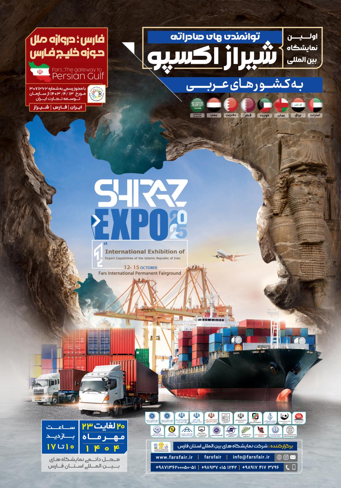 🔹معاون امور بازرگانی و توسعه تجارت اداره کل صمت استان بوشهر گفت: نخستین نمایشگاه بینالمللی توانمندیهای صادراتی جمهوری اسلامی ایران به کشورهای حاشیه خلیج فارس از 11 تا 14 شهریورماه 1404 به تاریخ 20 تا23 مهرماه سالجاری در استان فارس موکول شده است
