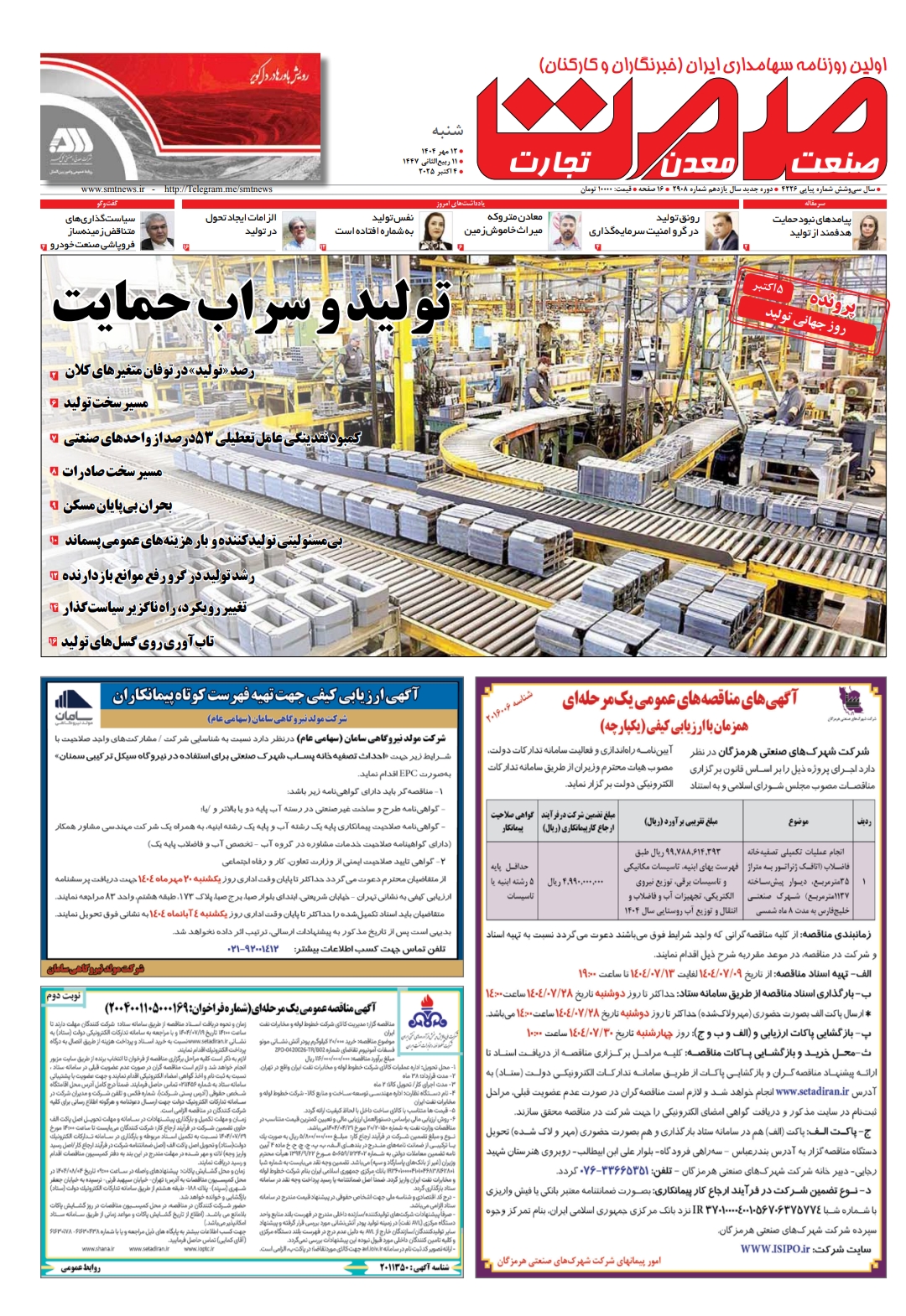 شماره ۲۹۰۸ روزنامه صمت به تاریخ ۱۲ مهر ۱۴۰۴ منتشر شد.